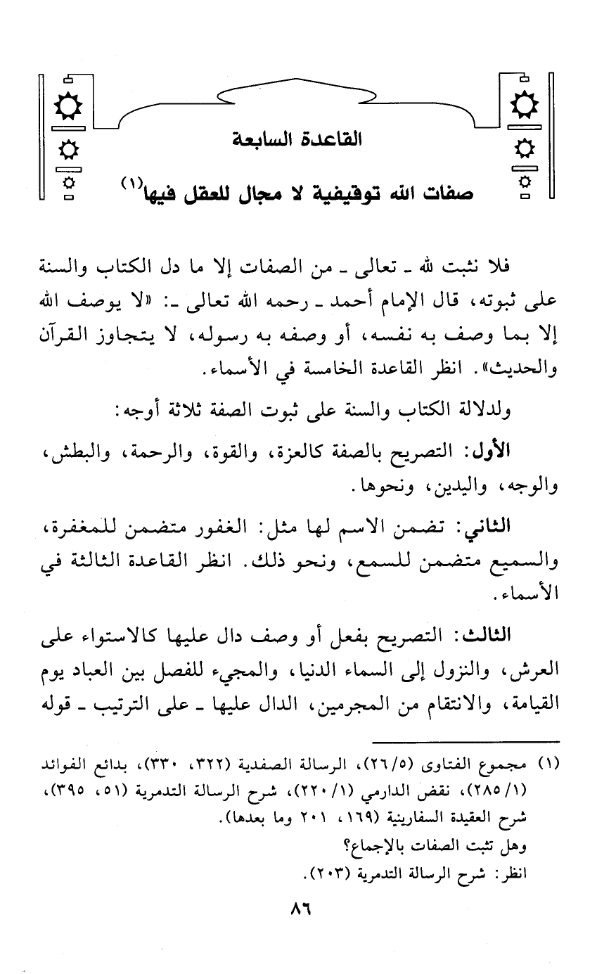 صفات الله توقيفية لا مجال للعقل فيها (¬1).