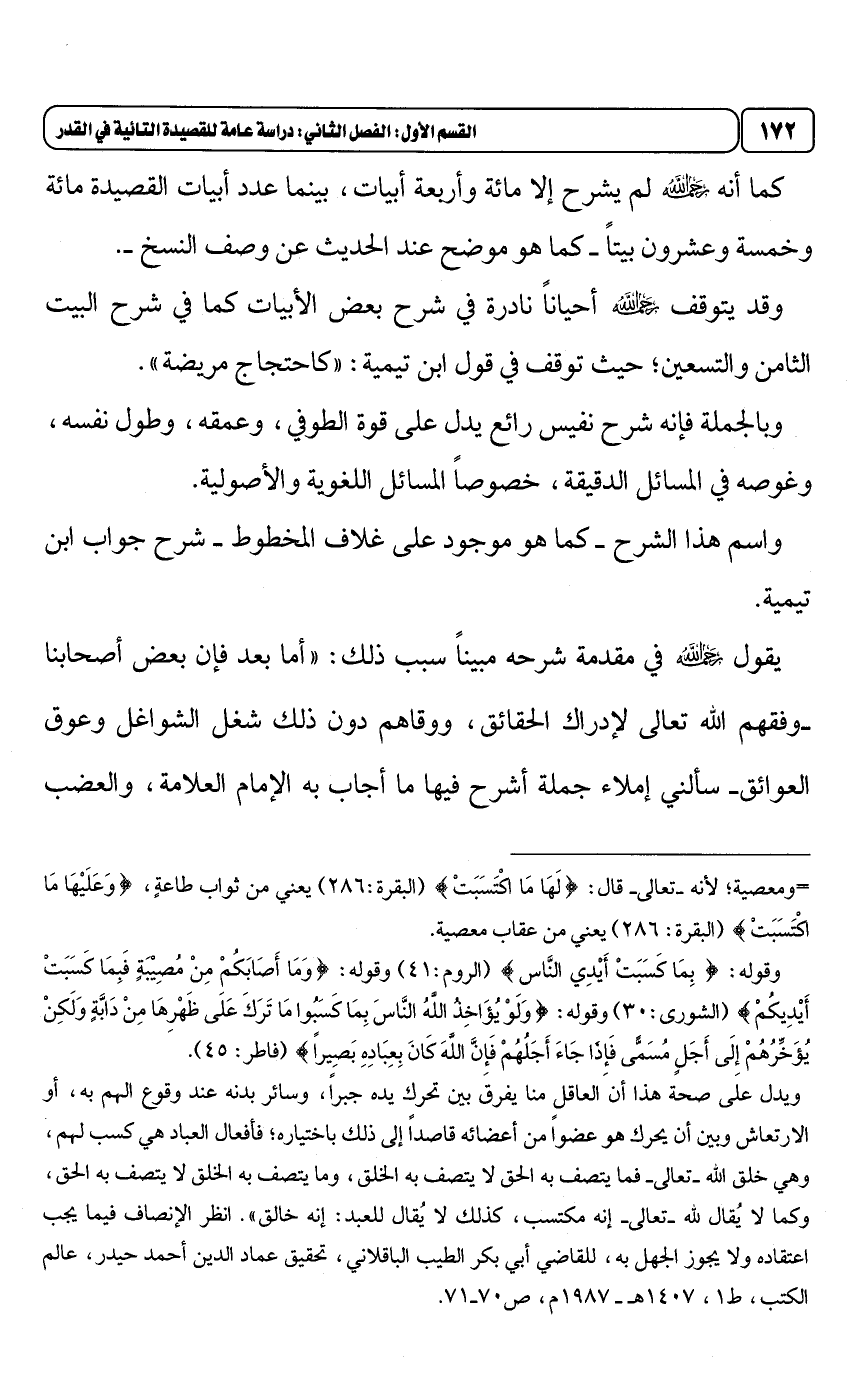 73- فكيف (¬2) ومِنْ هذا عذاب مُولَّدٌ ... عن الفعلِ فِعل العبد عند (¬3) الطبيعة
