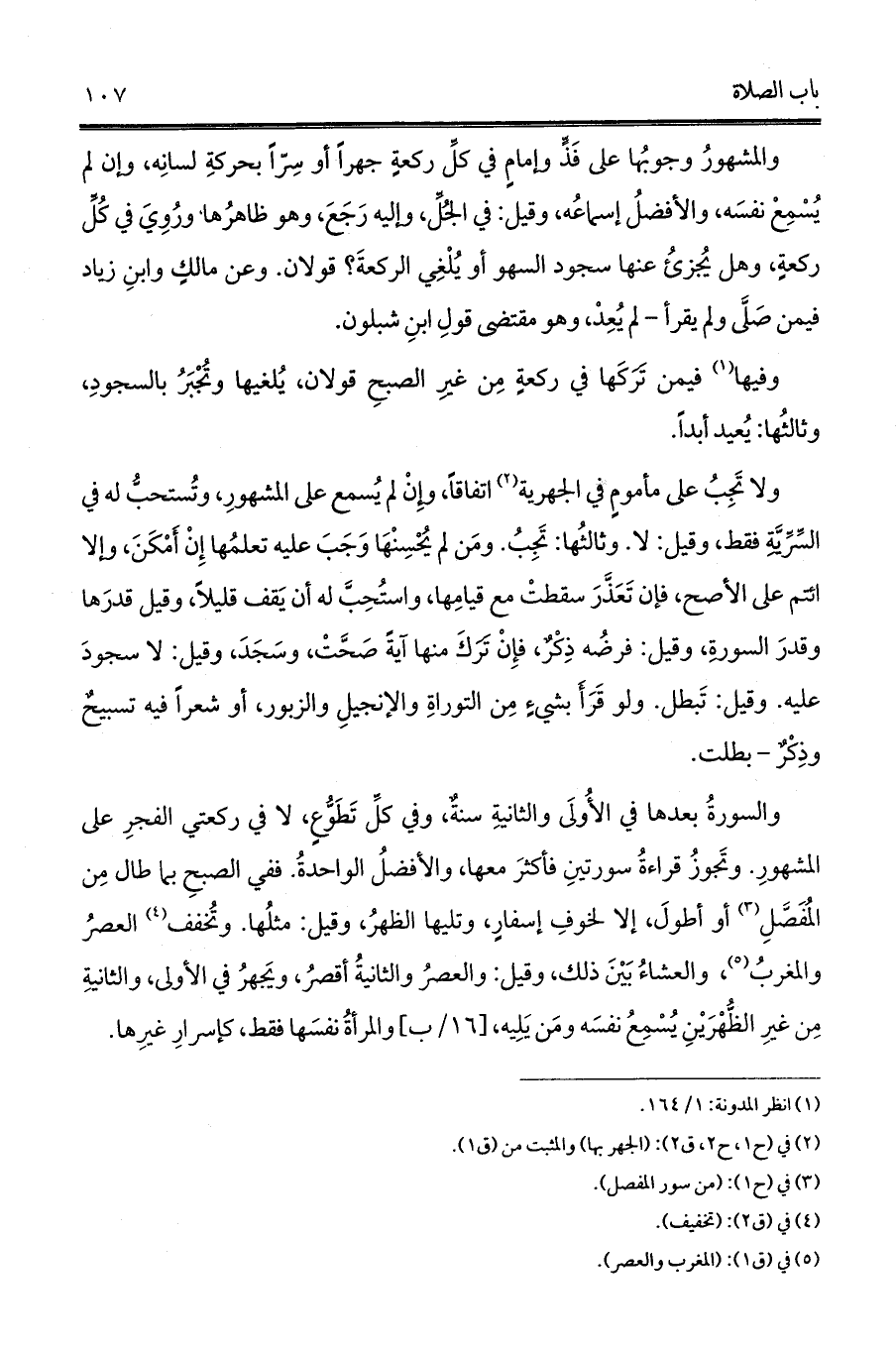 والمشهورُ وجوبُها على فَذٍّ وإمامٍ في كلِّ ركعةٍ جهراً أو سِرّاً بحركةِ لسانِه، وإن لم يُسْمِعْ نفسَه، والأفضلُ إسماعُه، وقيل: في الجُلِّ، وإليه رَجَعَ، وهو ظاهرُها، ورُوِيَ في كُلِّ ركعةٍ، وهل يُجزئُ عنها سجود السهو أو يُلْغِي الركعةَ؟ قولان. وعن مالكٍ وابنِ زياد فيمن صَلَّى ولم يقرأ - لم يُعِدْ، وهو مقتضى قولِ ابنِ شبلون.