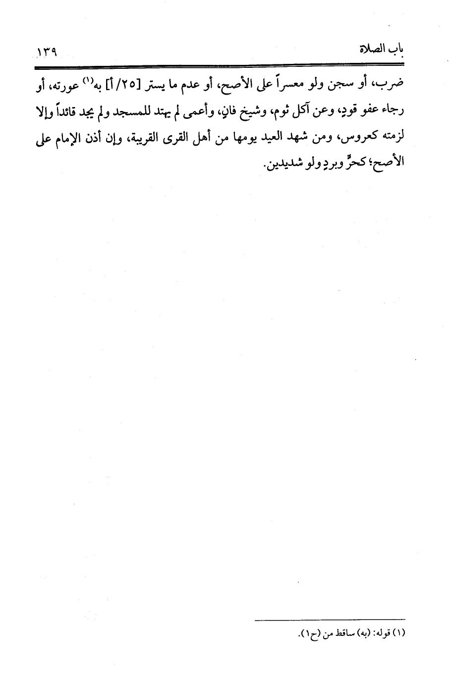 ضرب، أو سجن ولو معسراً على الأصح، أو عدم ما يستر [25/أ] به (¬1) عورته، أو رجاء عفو قودٍ، وعن آكل ثوم، وشيخ فانٍ، وأعمى لم يهتد للمسجد ولم يجد قائداً وإلا لزمته كعروس، ومن شهد العيد يومها من أهل القرى القريبة، وإن أذن الإمام على الأصح؛ كحرٍّ وبردٍ ولو شديدين.