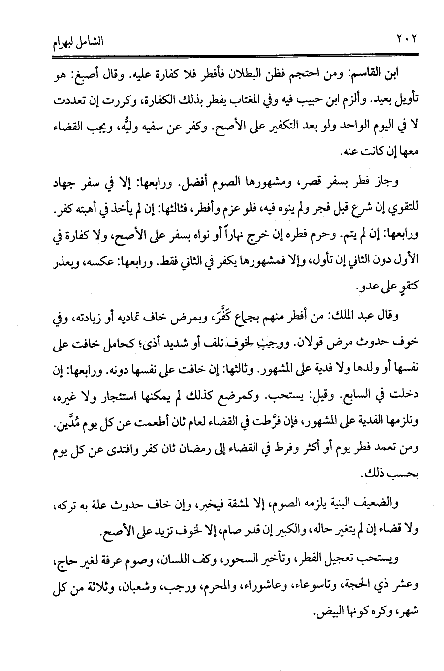 وجاز فطر بسفر قصر، ومشهورها الصوم أفضل. ورابعها: إلا في سفر جهاد للتقوي إن شرع قبل فجر ولم ينوه فيه، فلو عزم وأفطر, فثالثها: إن لم يأخذ في أهبته كفر. ورابعها: إن لم يتم. وحرم فطره إن خرج نهاراً أو نواه بسفر على الأصح، ولا كفارة في الأول دون الثاني إن تأول، وإلا فمشهورها يكفر في الثاني فقط. ورابعها: عكسه، وبعذر كتقوٍ على عدو.