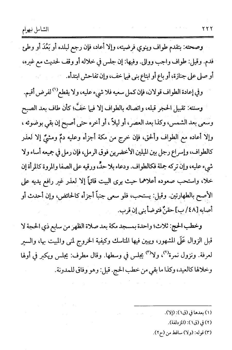 وخطب الحج: ثلاث؛ واحدة بمسجد مكة بعد صلاة الظهر من سابع ذي الحجة لا قبل الزوال عَلَى المشهور، ويبين فيها المناسك وكيفية الخروج لمنى والمبيت بها، والسير لعرفة. ونزول نمرة (¬2)، ولا (¬3) يجلس في وسطها. وقال مطرف: يجلس ويكبر في أولها وخلالها كالعيد، وكذا ما بقي من خطب الحج. قيل: وهو وفاق للمدونة.