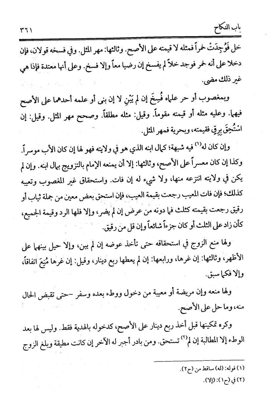 خل فَوُجِدَتْ خمراً فمثله لا قيمته على الأصح. وثالثها: مهر المثل. وفي فسخه قولان، فإن دخلا على أنه خمر فوجد خلاً لم يفسخ إن رضيا معاً وإلا فسخ. وعلى أنها معتدة فإذا هي غير ذلك مضى.