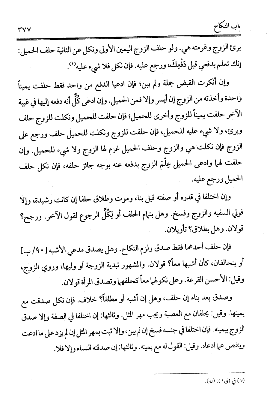 فإن حلف أحدهما فقط صدق ولزم النكاح. وهل يصدق مدعي الأشبه [أ/90] أو يتحالفان، كأن أشبها معاً؟ قولان. والمشهور تبدية الزوجة أو وليها، وروي الزوج، وقيل: الأحسن القرعة. وعلى نكولهما معاً كحلفهما وتصدق المرأة قولان.