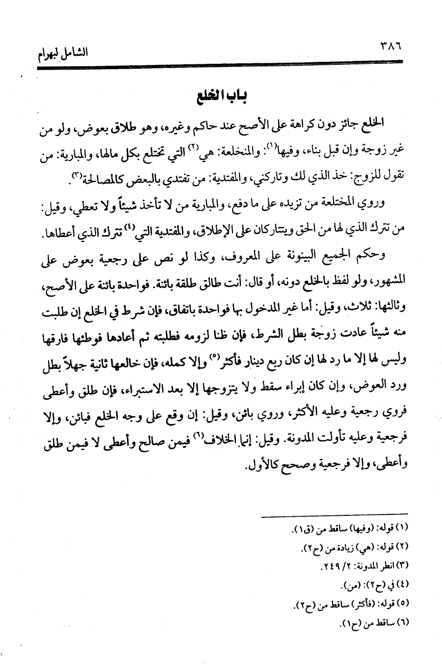 الخلع جائز دون كراهة على الأصح عند حاكم وغيره، وهو طلاق بعوض، ولو من غير زوجة وإن قبل بناء، وفيها (¬1): والمنخلعة: هي (¬2) التي تختلع بكل مالها، والمبارية: من تقول للزوج: خذ الذي لك وتاركني، والمفتدية: من تفتدي بالبعض كالمصالحة (¬3). وروي المختلعة من تزيده على ما دفع، والمبارية من لا تأخذ شيئاً ولا تعطي، وقيل: من تترك الذي لها من الحق ويتتاركان على الإطلاق، والمفتدية التي (¬4) تترك الذي أعطاها. وحكم الجميع البينونة على المعروف، وكذا لو نص على رجعية بعوض على المشهور، ولو لفظ بالخلع دونه، أو قال: أنت طالق طلقة بائنة. فواحدة بائنة على الأصح، وثالثها: ثلاث، وقيل: أما غير المدخول بها فواحدة باتفاق، فإن شرط في الخلع إن طلبت منه شيئاً عادت زوجة بطل الشرط، فإن ظنا لزومه فطلبته ثم أعادها فوطئها فارقها وليس لها إلا ما رد لها إن كان ربع دينار فأكثر (¬5) وإلا كمله، فإن خالعها ثانية جهلاً بطل ورد العوض، وإن كان إبراء سقط ولا يتزوجها إلا بعد الاستبراء، فإن طلق وأعطى فروي رجعية وعليه الأكثر، وروي بائن، وقيل: إن وقع على وجه الخلع فبائن، وإلا فرجعية وعليه تأولت المدونة. وقيل: إنما الخلاف (¬6) فيمن صالح وأعطى لا فيمن طلق وأعطى، وإلا فرجعية وصحح كالأول،