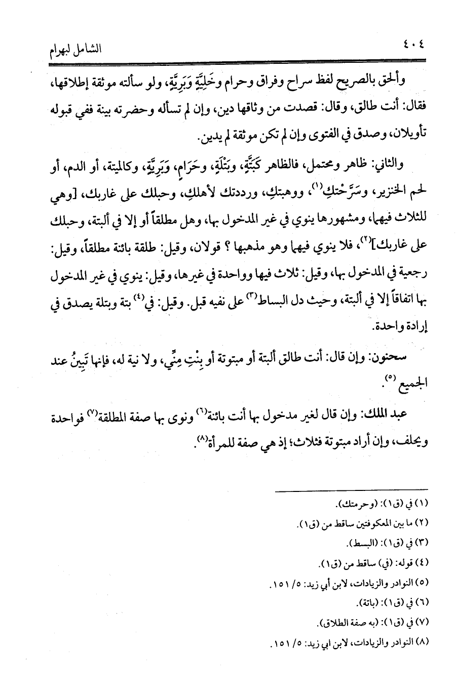 (¬8) النوادر والزيادات، لابن ابي زيد: 5/ 151.