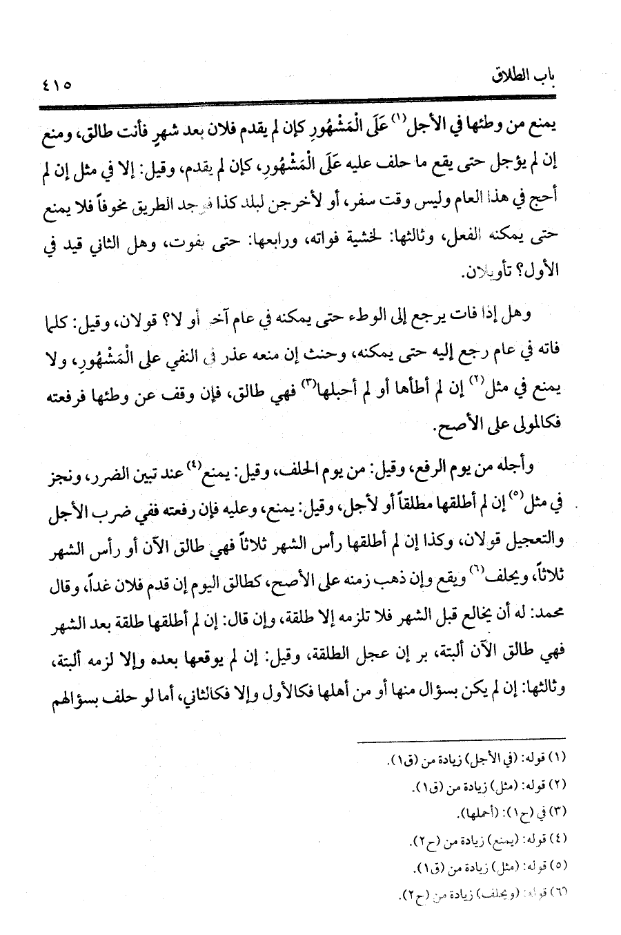 وأجله من يوم الرفع، وقيل: من يوم الحلف، وقيل: يمنع (¬4) عند تبين الضرر، ونجز في مثل (¬5) إن لم أطلقها مطلقاً أو لأجل، وقيل: يمنع، وعليه فإن رفعته ففي ضرب الأجل والتعجيل قولان، وكذا إن لم أطلقها رأس الشهر ثلاثاً فهي طالق الآن أو رأس الشهر ثلاثاً، ويحلف (¬6) ويقع وإن ذهب زمنه على الأصح، كطالق اليوم إن قدم فلان غداً، وقال محمد: له أن يخالع قبل الشهر فلا تلزمه إلا طلقة، وإن قال: إن لم أطلقها طلقة بعد الشهر فهي طالق الآن ألبتة، بر إن عجل الطلقة، وقيل: إن لم يوقعها بعده وإلا لزمه ألبتة، وثالثها: إن لم يكن بسؤال منها أو من أهلها فكالأول وإلا فكالثاني، أما لو حلف بسؤالهم