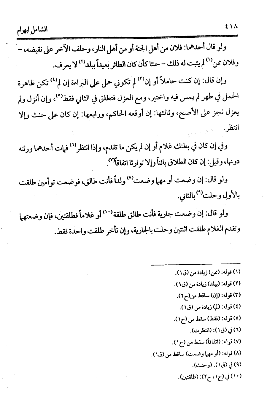 وفي إن كان في بطنك غلام أو إن لم يكن ما تقدم، وإذا انتظر (¬6) فمات أحدهما ورثته دونها، وقيل: إن كان الطلاق بائناً وإلا توارثا اتفاقاً (¬7).
