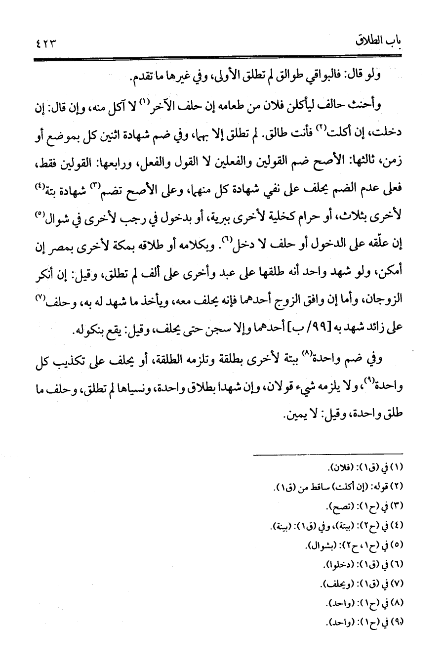 وأحنث حالف ليأكلن فلان من طعامه إن حلف الآخر (¬1) لا آكل منه، وإن قال: إن دخلت، إن أكلت (¬2) فأنت طالق. لم تطلق إلا بهما، وفي ضم شهادة اثنين كل بموضع أو زمن، ثالثها: الأصح ضم القولين والفعلين لا القول والفعل، ورابعها: القولين فقط، فعلى عدم الضم يحلف على نفي شهادة كل منهما، وعلى الأصح تضم (¬3) شهادة بتة (¬4) لأخرى بثلاث، أو حرام كخلية لأخرى ببرية، أو بدخول في رجب لأخرى في شوال (¬5) إن علّقه على الدخول أو حلف لا دخل (¬6). وبكلامه أو طلاقه بمكة لأخرى بمصر إن أمكن، ولو شهد واحد أنه طلقها على عبد وأخرى على ألف لم تطلق، وقيل: إن أنكر الزوجان، وأما إن وافق الزوج أحدهما فإنه يحلف معه، ويأخذ ما شهد له به، وحلف (¬7) على زائد شهد به [أ/99] أحدهما وإلا سجن حتى يحلف، وقيل: يقع بنكوله.
