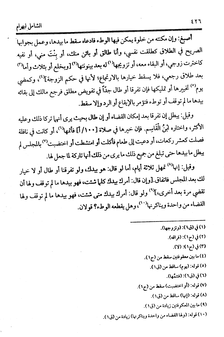 فإن خيرها في صلاة [ب/99] فأتمها (¬6)، أو كانت في نافلة فصلت كعشر ركعات، أو دعيت إلى طعام فأكلت أو امتشطت أو اختضبت (¬7) بالمجلس لم يبطل ما بيدها حتى تبلغ من جميع ذلك ما يرى من ذلك أنها تاركة لما جعل لها، وقيل: إنها (¬8) تمهل ثلاثة أيام، أما لو قال: هو بيدك، ولو تفرقنا أو طال أو لا خيار لك بعد المجلس فاتفاق.