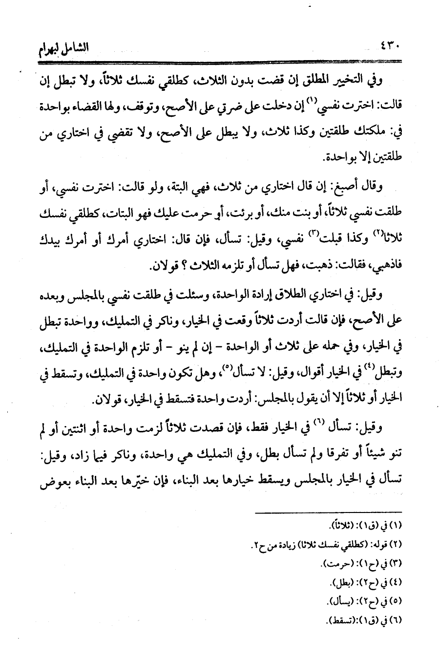 (¬2) قوله (كطلقي نفسك ثلاثا) زيادة من ح2.