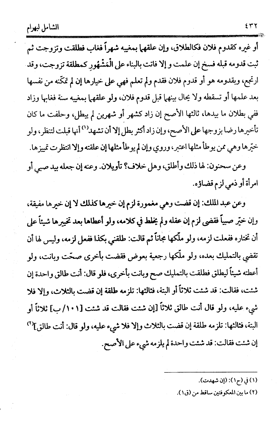 وعن عبد الملك: إن قضت وهي مغمورة لزم إن خيرها كذلك لا إن خيرها مفيقة، وإن خيّر صبياً فقضى لزم إن عقله ولم يخلط في كلامه، ولو أعطاها بعد تخييرها شيئاً على أن تختاره ففعلت لزمه، ولو ملّكها مجاناً ثم قالت: طلقني بكذا ففعل لزمه، وليس لها أن تقضي بالتمليك بعده، ولو ملّكها رجعية بعوض فقضت بأخرى صحّت وبانت، ولو أعطته شيئاً ليطلق فطلقت بالتمليك صح وبانت بأخرى، فلو قال: أنت طالق واحدة إن شئت، فقالت: قد شئت ثلاثاً أو البتة، فثالثها: تلزمه طلقة إن قضت بالثلاث، وإلا فلا شيء عليه، ولو قال أنت طالق ثلاثاً [إن شئت فقالت قد شئت [أ/101] ثلاثاً أو البتة، فثالثها: تلزمه طلقة إن قضت بالثلاث وإلا فلا شيء عليه، ولو قال: أنت طالق] (¬2) إن شئت فقالت: قد شئت واحدة لم يلزمه شيء على الأصح.