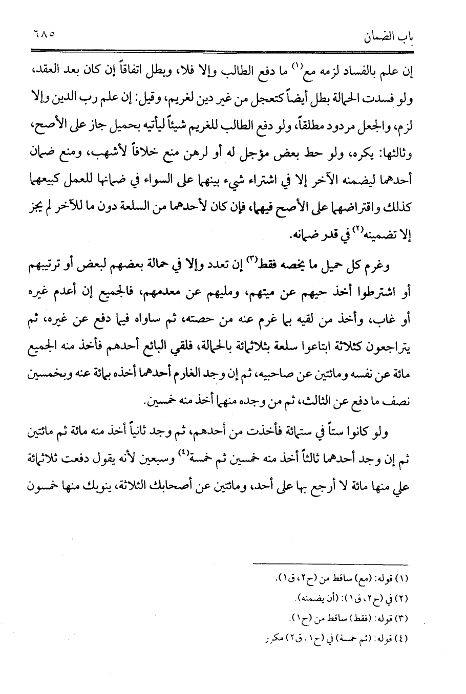إن علم بالفساد لزمه مع (¬3) ما دفع الطالب وإلا فلا، وبطل اتفاقاً إن كان بعد العقد، ولو فسدت الحمالة بطل أيضاً كتعجل من غير دين لغريم، وقيل: إن علم رب الدين وإلا لزم، والجعل مردود مطلقاً، ولو دفع الطالب للغريم شيئاً ليأتيه بحميل جاز على الأصح، وثالثها: يكره، ولو حط بعض مؤجل له أو لرهن منع خلافاً لأشهب، ومنع ضمان أحدهما ليضمنه الآخر إلا في اشتراء شيء بينهما على السواء في ضمانها للعمل كبيعهما كذلك واقتراضهما على الأصح فيهما، فإن كان لأحدهما من السلعة دون ما للآخر لم يجز إلا تضمينه (¬4) في قدر ضمانه.