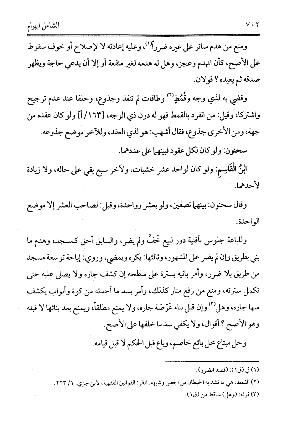 (¬2) القمط: هي ما تشد به الحيطان من الجص وشبهه. انظر: القوانين الفقهية، لابن جزي: 1/ 223.