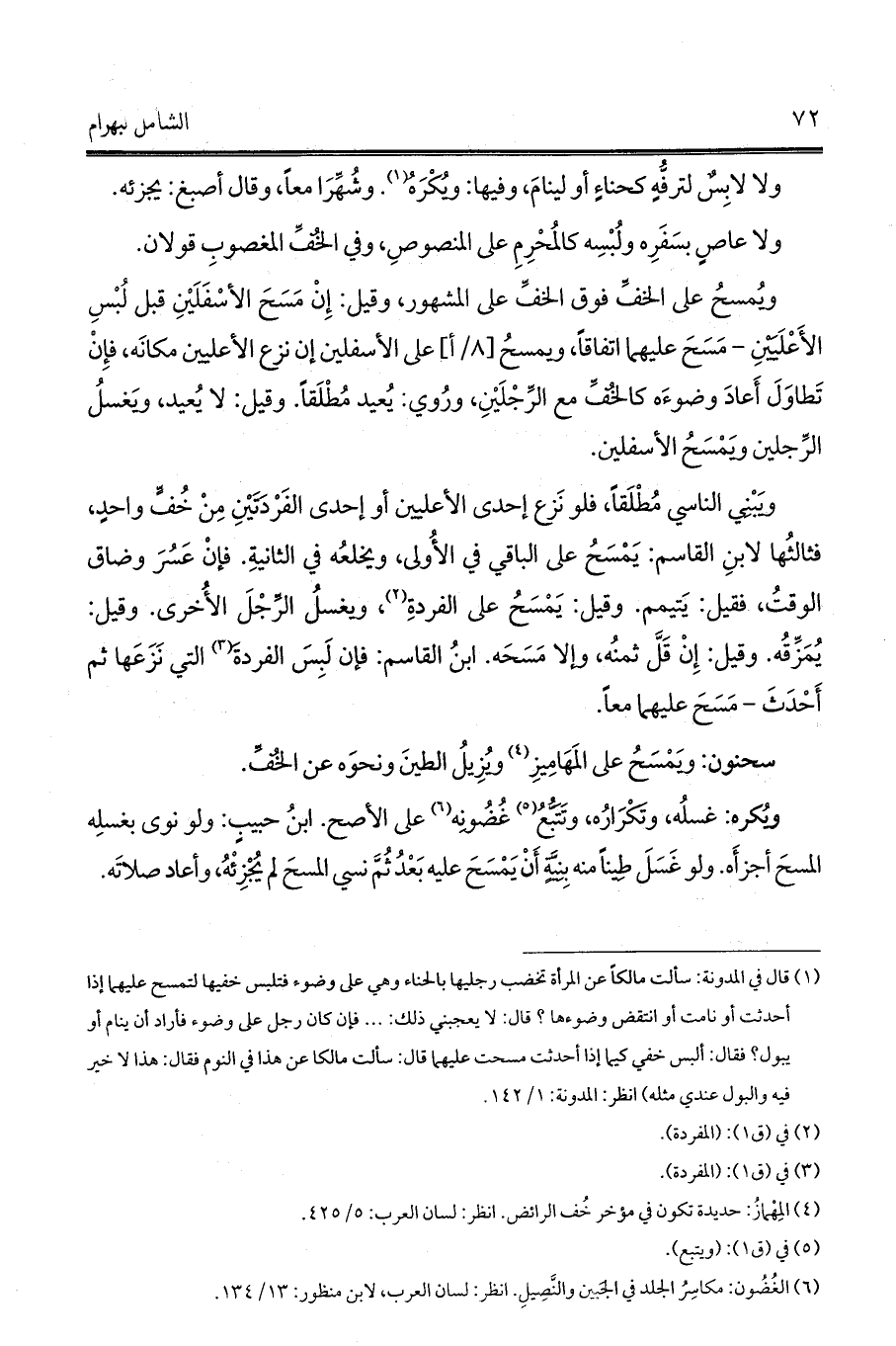 سحنون: ويَمْسَحُ على المَهَامِيزِ (¬4) ويُزِيلُ الطينَ ونحوَه عن الخُفِّ.