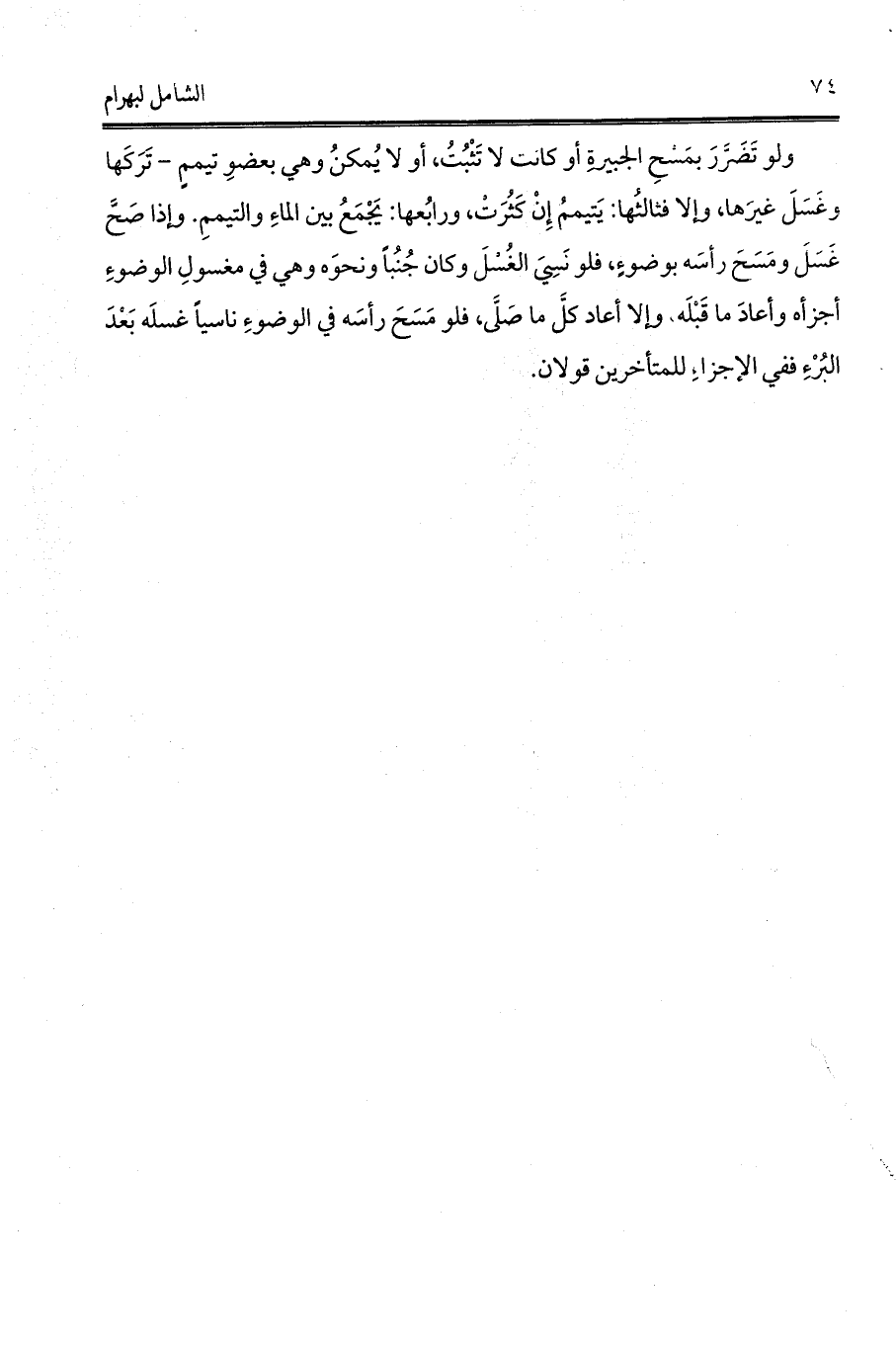 ولو تَضَرَّرَ بمَسْحِ الجبيرةِ أو كانت لا تَثْبُتُ، أو لا يُمكنُ وهي بعضوِ تيممٍ - تَرَكَها وغَسَلَ غيرَها، وإلا فثالثُها: يَتيممُ إِنْ كَثُرَتْ، ورابُعها: يَجْمَعُ بين الماءِ والتيممِ. وإذا صَحَّ غَسَلَ ومَسَحَ رأسَه بوضوءٍ، فلو نَسِيَ الغُسْلَ وكان جُنُباً ونحوَه وهي في مغسولِ الوضوءِ أجزأه وأعادَ ما قَبْلَه، وإلا أعاد كلَّ ما صَلَّى، فلو مَسَحَ رأسَه في الوضوءِ ناسياً غسلَه بَعْدَ البُرْءِ ففي الإجزاءِ للمتأخرين قولان.