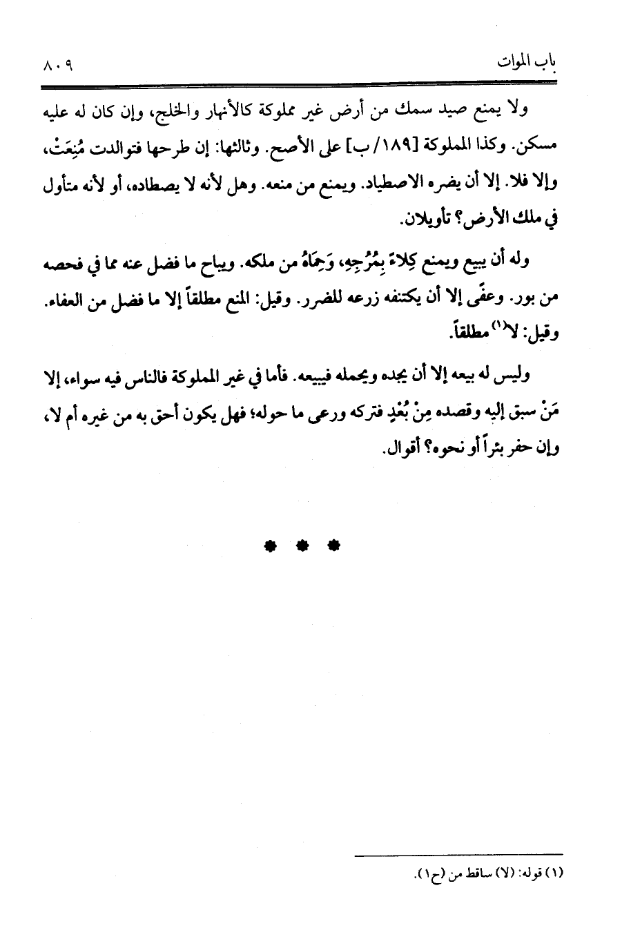 ولا يمنع صيد سمك من أرض غير مملوكة كالأنهار والخلج، وإن كان له عليه مسكن. وكذا المملوكة [أ/189] على الأصح. وثالثها: إن طرحها فتوالدت مُنِعَتْ، وإلا فلا. إلا أن يضره الاصطياد. ويمنع من منعه. وهل لأنه لا يصطاده، أو لأنه متأول في ملك الأرض؟ تأويلان.