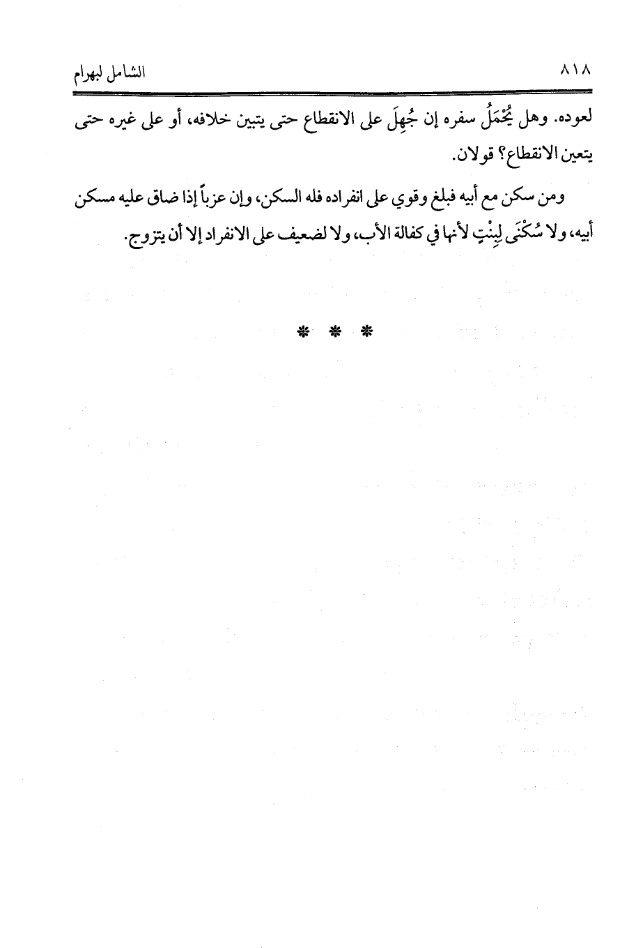 لعوده. وهل يُحْمَلُ سفره إن جُهِلَ على الانقطاع حتى يتبين خلافه، أو على غيره حتى يتعين الانقطاع؟ قولان.