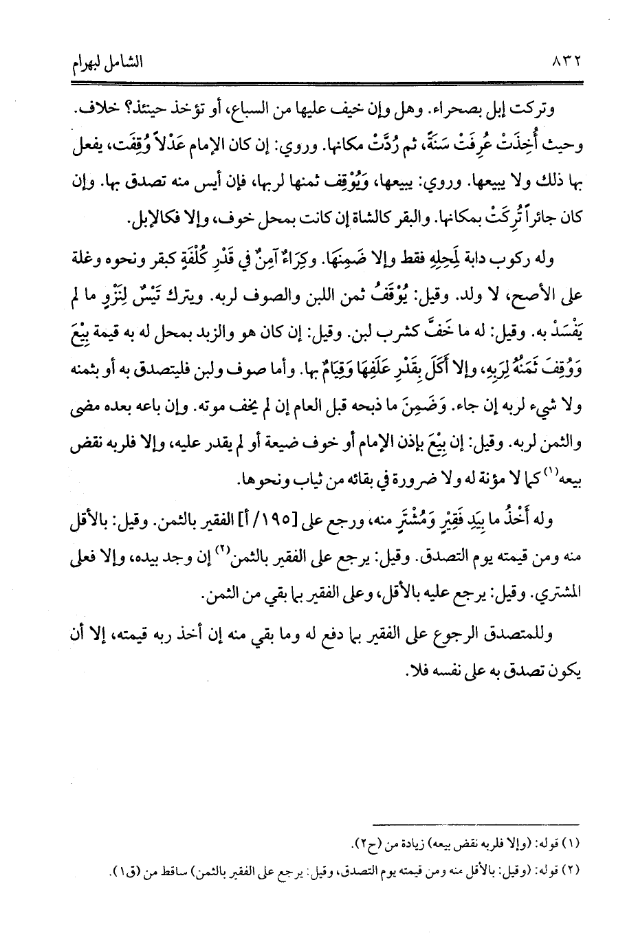 (¬2) قوله: (وقيل: بالأقل منه ومن قيمته يوم التصدق، وقيل: يرجع على الفقير بالثمن) ساقط من (ق1).
