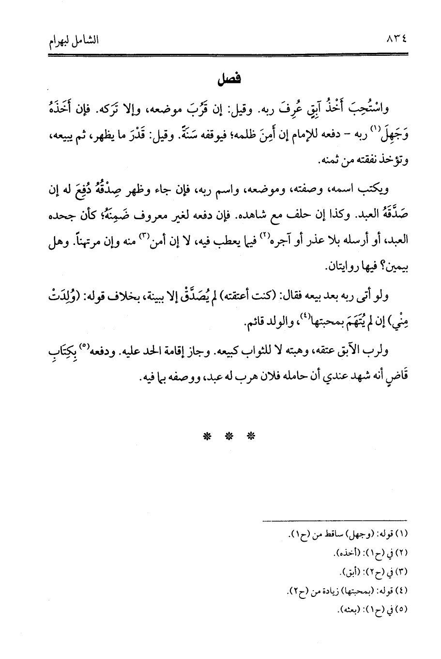 ولو أتى ربه بعد بيعه فقال: (كنت أعتقته) لم يُصَدَّقْ إلا ببينة، بخلاف قوله: (وُلِدَتْ مِنْي) إن لم يُتَهَمَ بمحبتها (4)، والولد قائم.