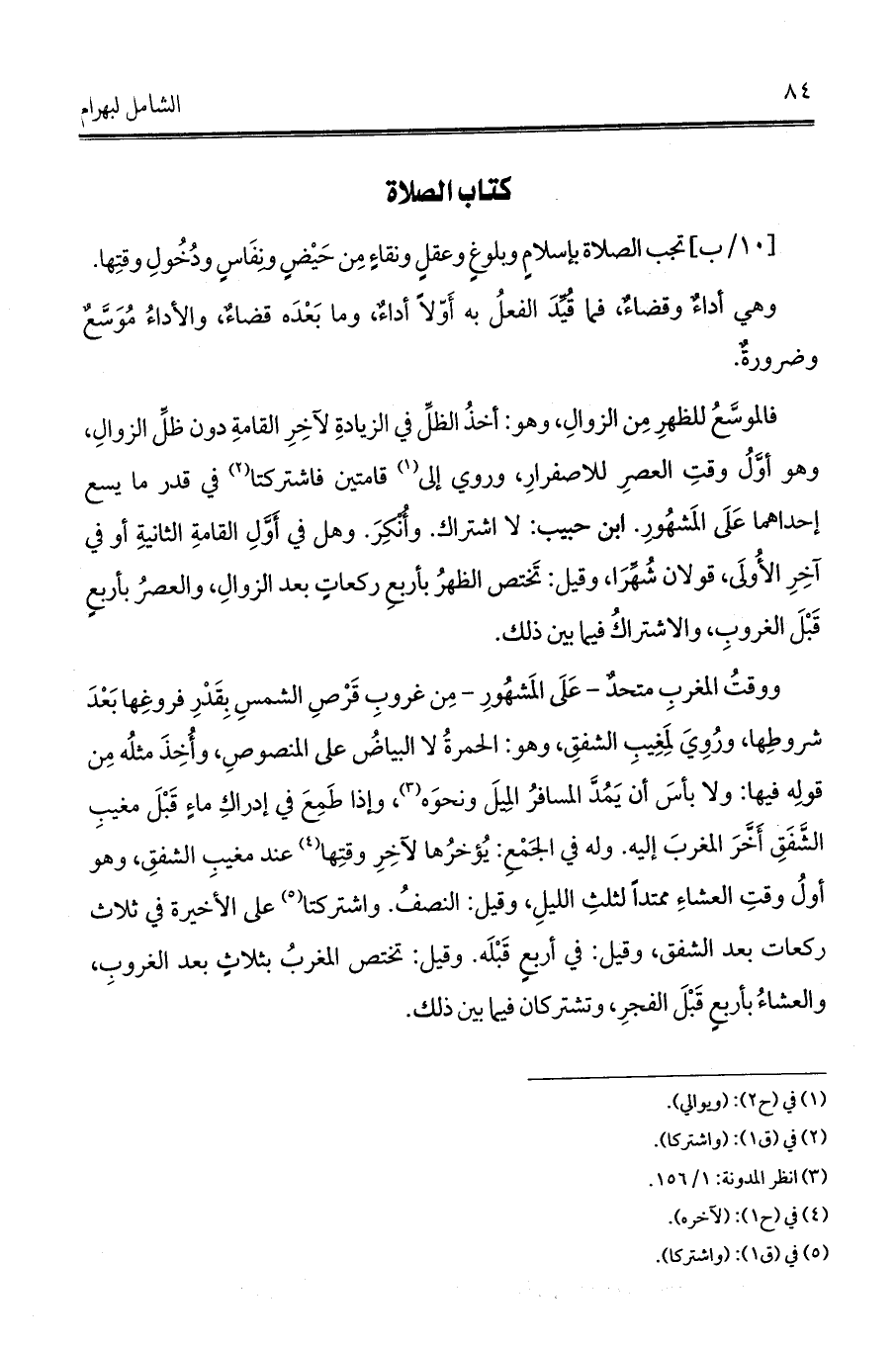 [10/ب] تجب الصلاة بإسلامٍ وبلوغٍ وعقلٍ ونقاءٍ مِن حَيْضٍ ونِفَاسٍ ودُخُولِ وقتِها.