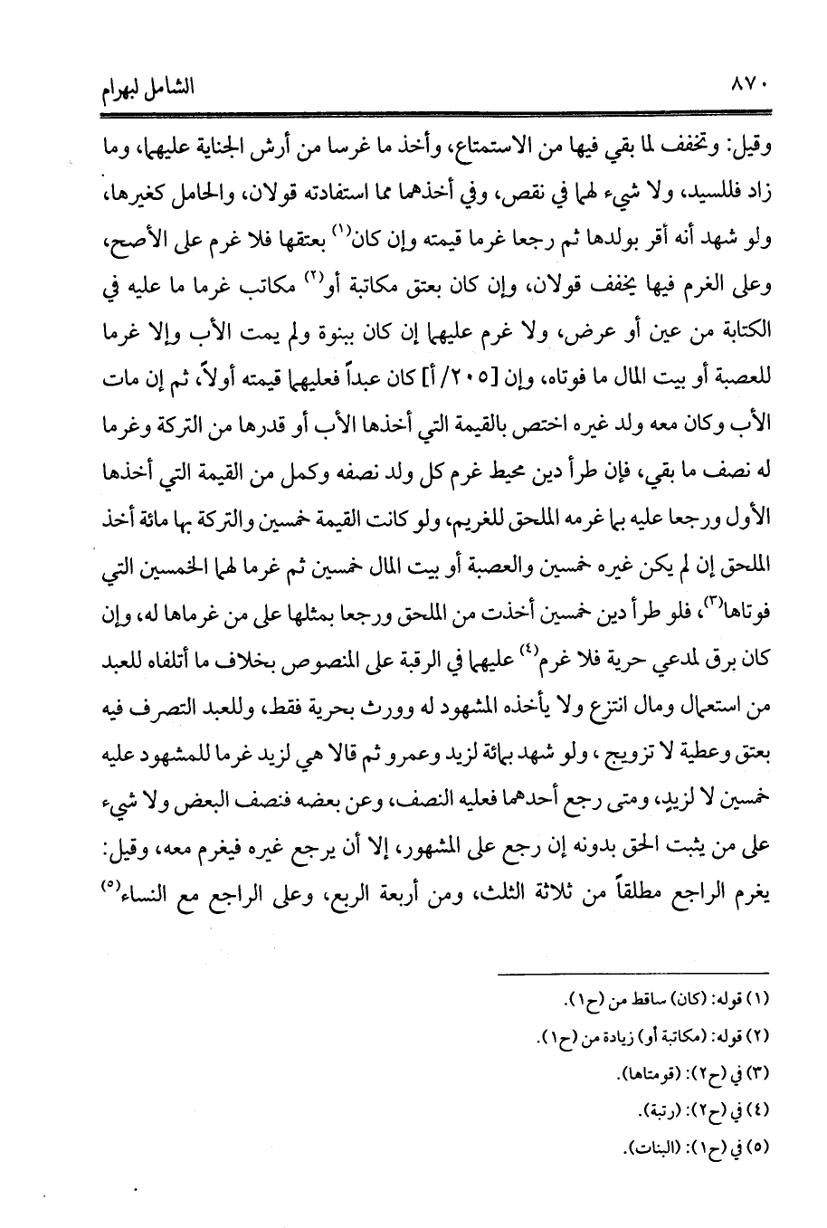 بعتقها فلا غرم على الأصح، وعلى الغرم فيها يخفف قولان، وإن كان بعتق مكاتبة أو (2) مكاتب غرما ما عليه في الكتابة من عين أو عرض، ولا غرم عليهما إن كان ببنوة ولم يمت الأب وإلا غرما للعصبة أو بيت المال ما فوتاه، وإن [ب/204] كان عبداً فعليهما قيمته أولاً، ثم إن مات الأب وكان معه ولد غيره اختص بالقيمة التي أخذها الأب أو قدرها من التركة وغرما له نصف ما بقي، فإن طرأ دين محيط غرم كل ولد نصفه وكمل من القيمة التي أخذها الأول ورجعا عليه بما غرمه الملحق للغريم، ولو كانت القيمة خمسين والتركة بها مائة أخذ الملحق إن لم يكن غيره خمسين والعصبة أو بيت المال خمسين ثم غرما لهما الخمسين التي فوتاها (3)، فلو طرأ دين خمسين أخذت من الملحق ورجعا بمثلها على من غرماها له، وإن كان برق لمدعي حرية فلا غرم (4) عليهما في الرقبة على المنصوص بخلاف ما أتلفاه للعبد من استعمال ومال انتزع ولا يأخذه المشهود له وورث بحرية فقط، وللعبد التصرف فيه بعتق وعطية لا تزويج، ولو شهد بمائة لزيد وعمرو ثم قالا هي لزيد غرما للمشهود عليه خمسين لا لزيدٍ، ومتى رجع أحدهما فعليه النصف، وعن بعضه فنصف البعض ولا شيء على من يثبت الحق بدونه إن رجع على المشهور، إلا أن يرجع غيره فيغرم معه، وقيل: يغرم الراجع مطلقاً من ثلاثة الثلث، ومن أربعة الربع، وعلى الراجع مع النساء (5)