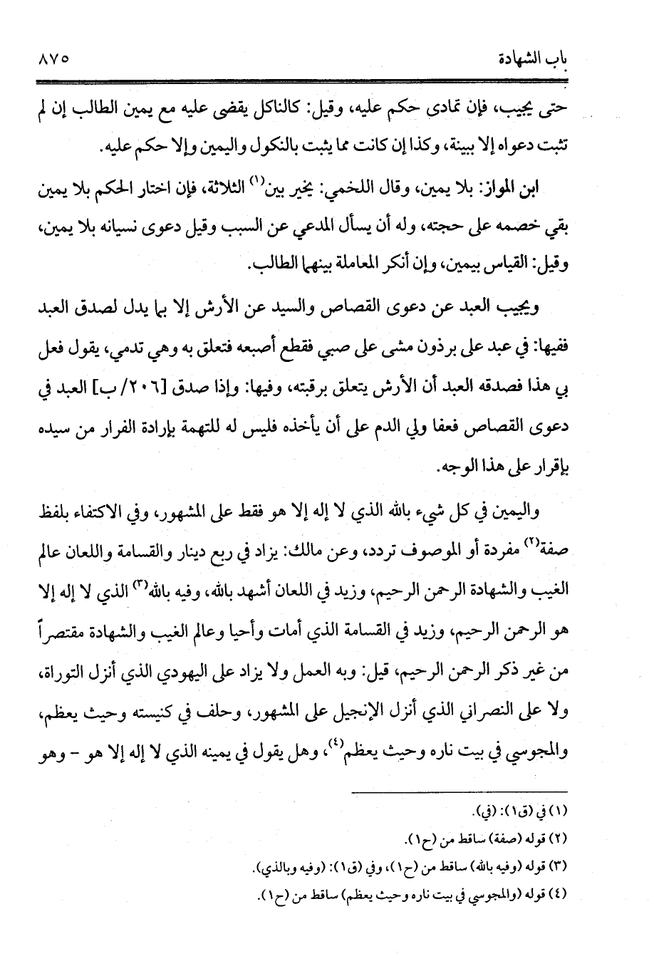 واليمين في كل شيء بالله الذي لا إله إلا هو فقط على المشهور، وفي الاكتفاء بلفظ صفة (2) مفردة أو الموصوف تردد، وعن مالك: يزاد في ربع دينار والقسامة واللعان عالم الغيب والشهادة الرحمن الرحيم، وزيد في اللعان أشهد بالله، وفيه بالله (3) الذي لا إله إلا هو الرحمن الرحيم، وزيد في القسامة الذي أمات وأحيا وعالم الغيب والشهادة مقتصراً من غير ذكر الرحمن الرحيم، قيل: وبه العمل ولا يزاد على اليهودي الذي أنزل التوراة، ولا على النصراني الذي أنزل الإنجيل على المشهور، وحلف في كنيسته وحيث يعظم، والمجوسي في بيت ناره وحيث يعظم (4)، وهل يقول في يمينه الذي لا إله إلا هو - وهو