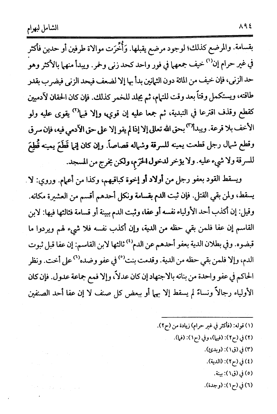 وَأُخِّرَت موالاة طرفين أو حدين فأكثر في غير حرام إن (¬1) خيف جمعهما في فور واحد كحد زنى وخمر. ويبدأ منهما بالأكثر وهو حد الزنى، فإن خيف من المائة دون الثمانين بدأ بها إلا لضعف فيحد الزنى فيضرب بقدر طاقته، ويستكمل وقتاً بعد وقت للتمام، ثم يجلد للخمر كذلك. فإن كان الحقان لآدميين كقطع وقذف اقترعا في التبدية، ثم جمعا عليه إن قوي، وإلا فبما (¬2) يقوى عليه ولو الأخف بلا قرعة. ويبدأ (¬3) بحق الله تعالى إلا إذا لم يقو إلا على حق الآدمي فيه، فإن سرق وقطع شمال رجل قطعت يمينه للسرقة وشماله قصاصاً. وإن كان إنما قَطَعَ يمينه قُطِعَ للسرقة ولا شيء عليه. ولا يؤخر لدخول الحَرَمِ، ولكن يخرج من المسجد.