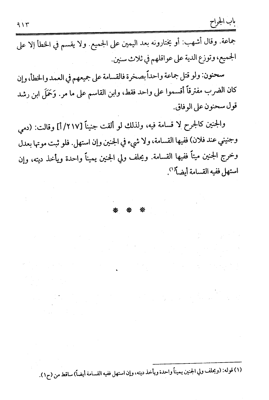 (¬1) قوله: (ويحلف ولي الجنين يميناً واحدة ويأخذ ديته، وإن استهل ففيه القسامة أيضاً) ساقط من (ح1).