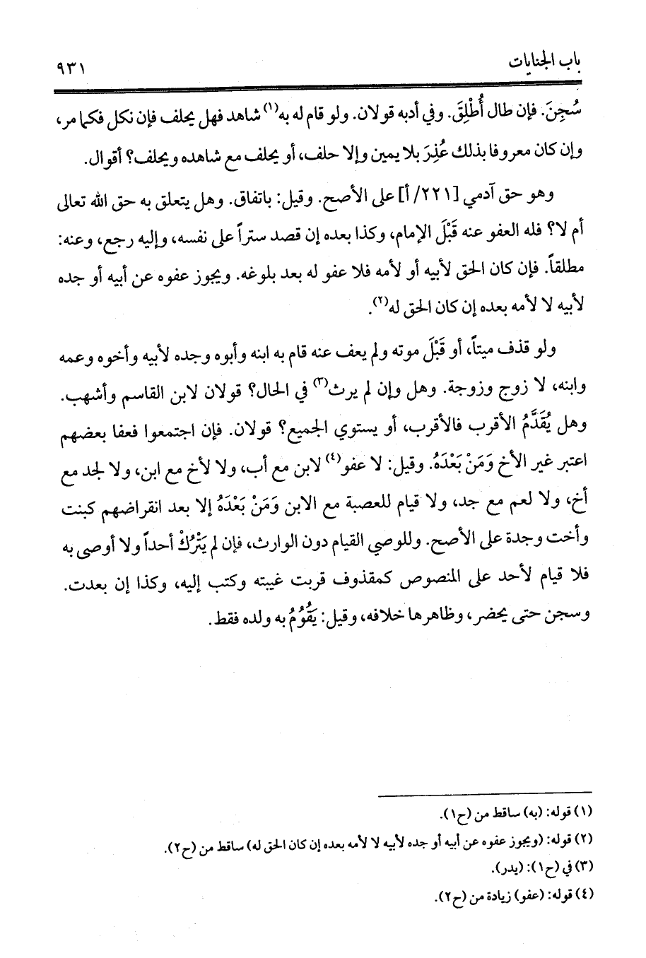 (¬2) قوله: (ويجوز عفوه عن أبيه أو جده لأبيه لا لأمه بعده إن كان الحق له) ساقط من (ح2).