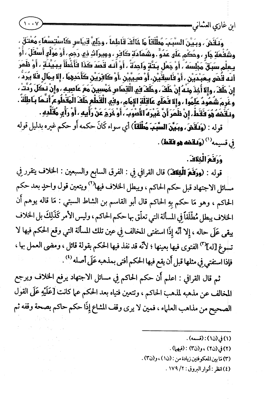 (¬4) انظر: أنوار البروق: 2/ 179.