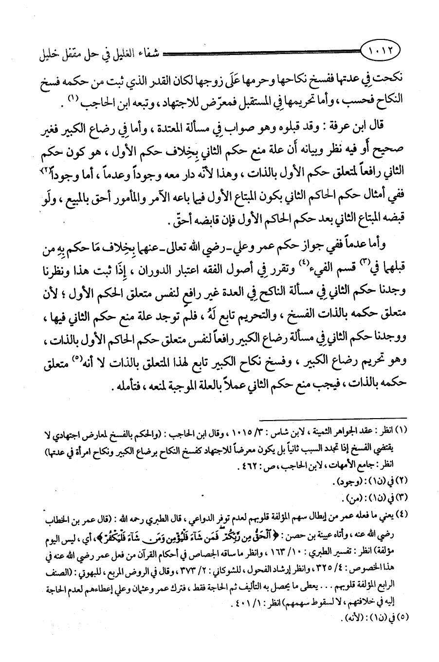 (¬1) انظر: عقد الجواهر الثمينة، لابن شاس: 3/ 1015، وقال ابن الحاجب: (والحكم بالفسخ لمعارض اجتهادي لا يقتضي الفسخ إذا تجدد السبب ثانياً بل يكون معرضاً للاجتهاد كفسخ النكاح برضاع الكبير ونكاح امرأة في عدتها) انظر: جامع الأمهات، لابن الحاجب، ص: 462.