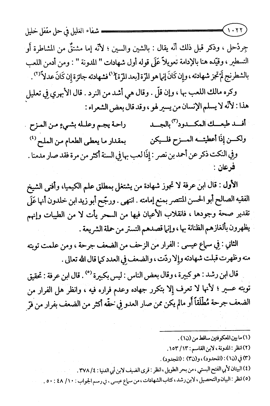 (¬5) انظر: البيان والتحصيل، لابن رشد، كتاب الشهادات، من سماع عيسى، في رسم الجواب: 10/ 48: 50.