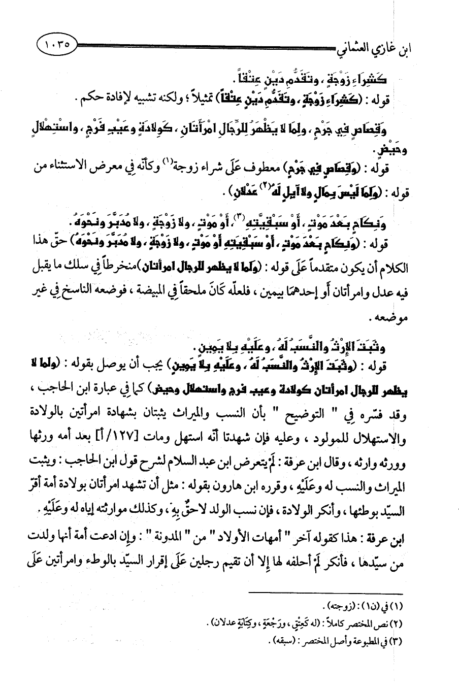 ابن عرفة: هذا كقوله آخر " أمهات الأولاد " من " المدونة ": وإِن ادعت أمة أنها ولدت من سيّدها، فأنكر لَمْ أحلفه لها إِلا أن تقيم رجلين عَلَى إقرار السيّد بالوطء وامرأتين عَلَى