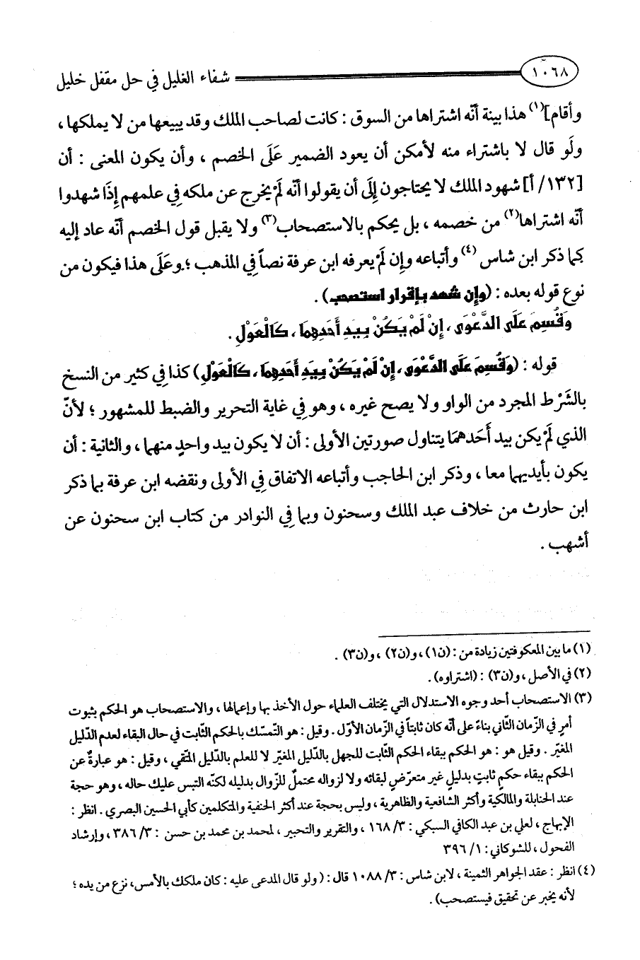 (¬3) الاستصحاب أحد وجوه الاستدلال التي يختلف العلماء حول الأخذ بها وإعمالها، والاستصحاب هو الحكم بثبوت أمرٍ في الزّمان الثّاني بناءً على أنّه كان ثابتاً في الزّمان الأوّل. وقيل: هو التّمسّك بالحكم الثّابت في حال البقاء لعدم الدّليل المغيّر. وقيل هو: هو الحكم ببقاء الحكم الثّابت للجهل بالدّليل المغيّر لا للعلم بالدّليل المتّقي، وقيل: هو عبارةٌ عن الحكم ببقاء حكمٍ ثابتٍ بدليلٍ غير متعرّضٍ لبقائه ولا لزواله محتملٌ للزّوال بدليله لكنّه التبس عليك حاله، وهو حجة عند الحنابلة والمالكية وأكثر الشافعية والظاهرية، وليس بحجة عند أكثر الحنفية والمتكلمين كأبي الحسين البصري. انظر: الإبهاج، لعلي بن عبد الكافي السبكي: 3/ 168، والتقرير والتحبير، لمحمد بن محمد بن حسن: 3/ 386، وإرشاد الفحول، للشوكاني: 1/ 396