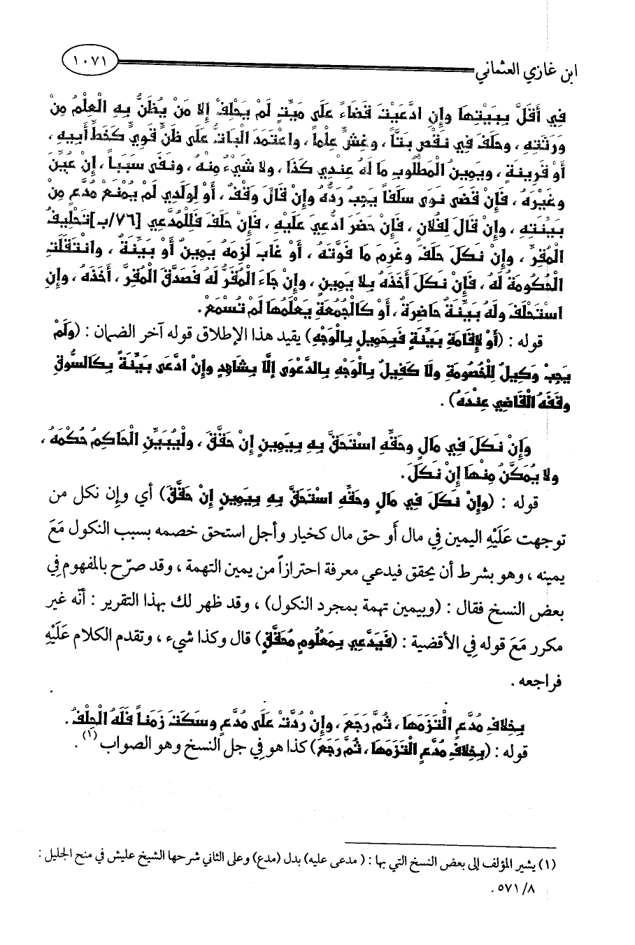 (¬1) يشير المؤلف إلى بعض النسخ التي بها: (مدعى عليه) بدل (مدع) وعلى الثاني شرحها الشيخ عليش في منح الجليل: 8/ 571.
