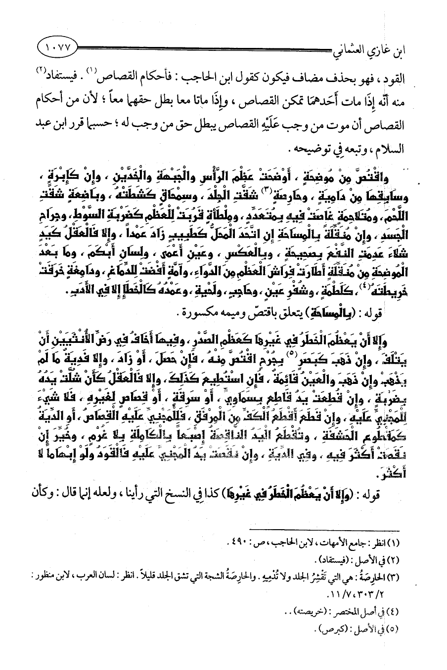 (¬3) الحارِصَةُ: هي التي تَقْشِرُ الجلد ولا تُدْمِيهِ. والحارِصَةُ الشجة التي تشق الجلد قليلاً. انظر: لسان العرب، لابن منظور: 2/ 303، 7/ 11.