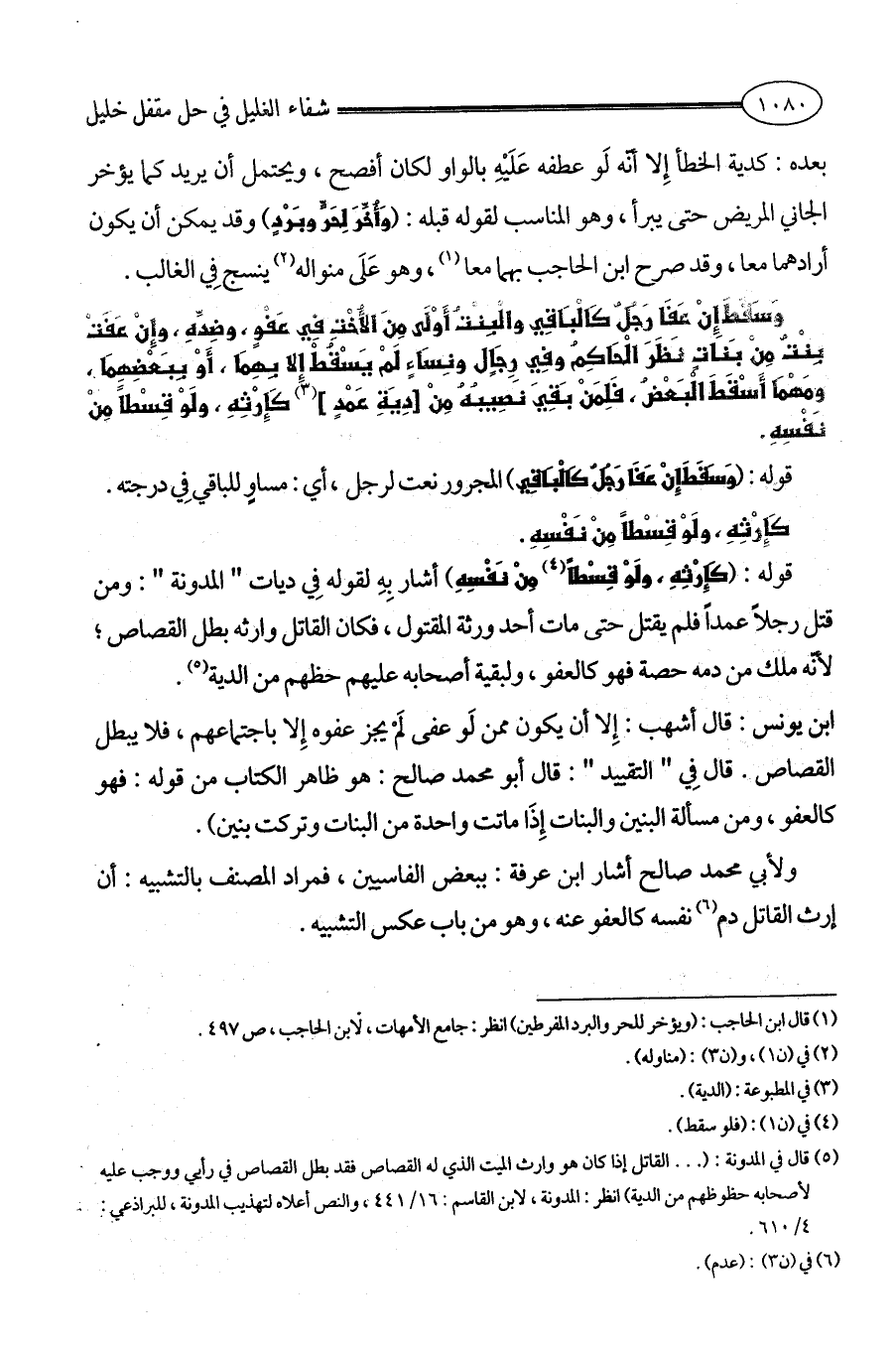 ولأبي محمد صالح أشار ابن عرفة: ببعض الفاسيين، فمراد المصنف بالتشبيه: أن إرث القاتل دم (¬6) نفسه كالعفو عنه، وهو من باب عكس التشبيه.