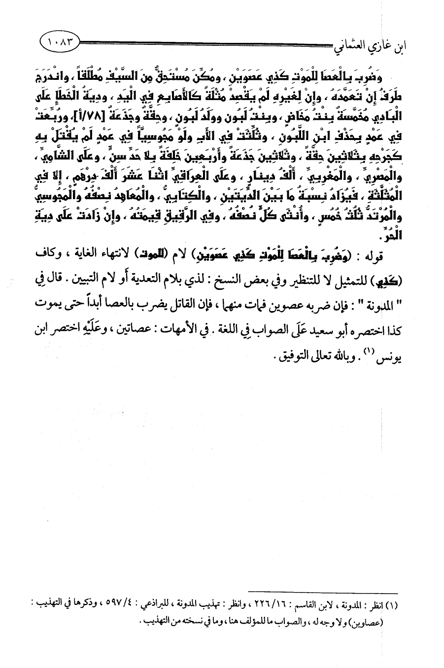 (¬1) انظر: المدونة، لابن القاسم: 16/ 226، وانظر: تهذيب المدونة، للبراذعي: 4/ 597، وذكرها في التهذيب: (عصاوين) ولا وجه له، والصواب ما للمؤلف هنا، وما في نسخته من التهذيب.