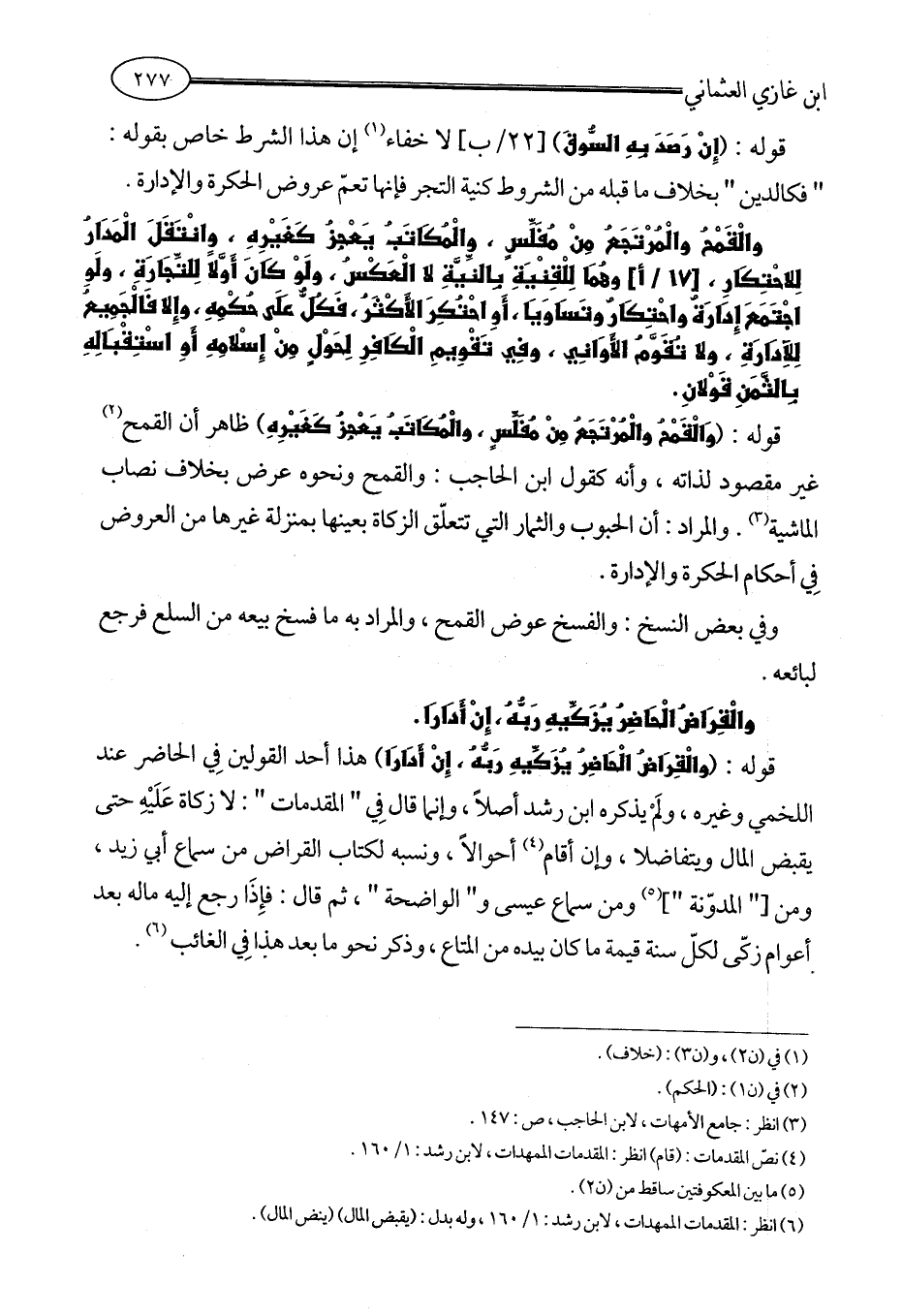 قوله: (وَالْقَمْحُ والْمُرْتَجَعُ مِنْ مُفَلِّسٍ، والْمُكَاتَبُ يَعْجِزُ كَغَيْرِهِ) ظاهر أن القمح (¬2) غير مقصود لذاته، وأنه كقول ابن الحاجب: والقمح ونحوه عرض بخلاف نصاب الماشية (¬3). والمراد: أن الحبوب والثمار التي تتعلّق الزكاة بعينها بمنزلة غيرها من العروض فِي أحكام الحكرة والإدارة.