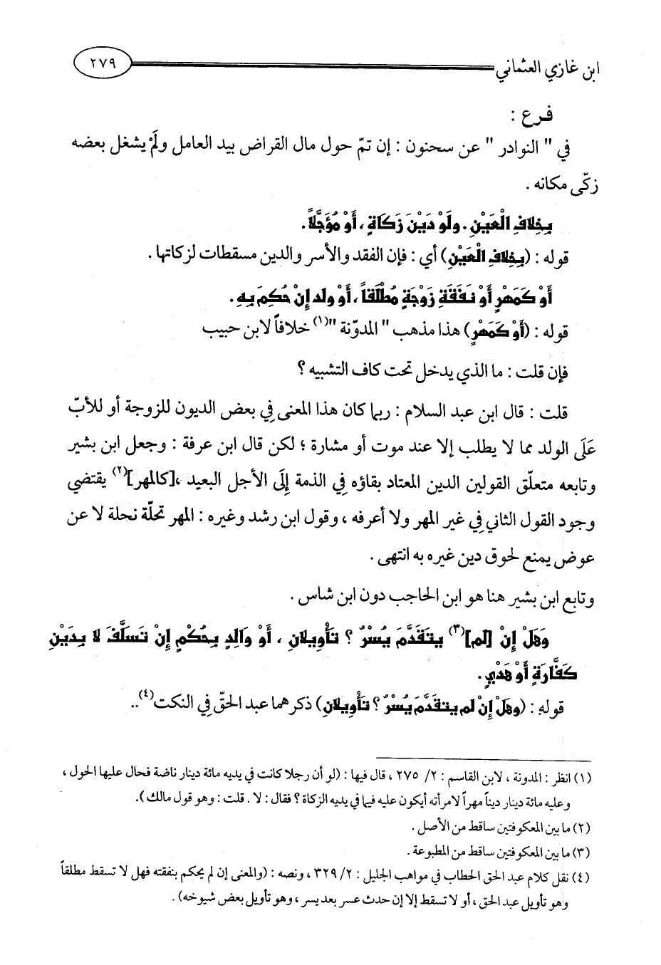 (¬4) نقل كلام عبد الحق الحطاب في مواهب الجليل: 2/ 329، ونصه: (والمعنى إن لم يحكم بنفقته فهل لا تسقط مطلقاً وهو تأويل عبد الحق، أو لا تسقط إلا إن حدث عسر بعد يسر، وهو تأويل بعض شيوخه).