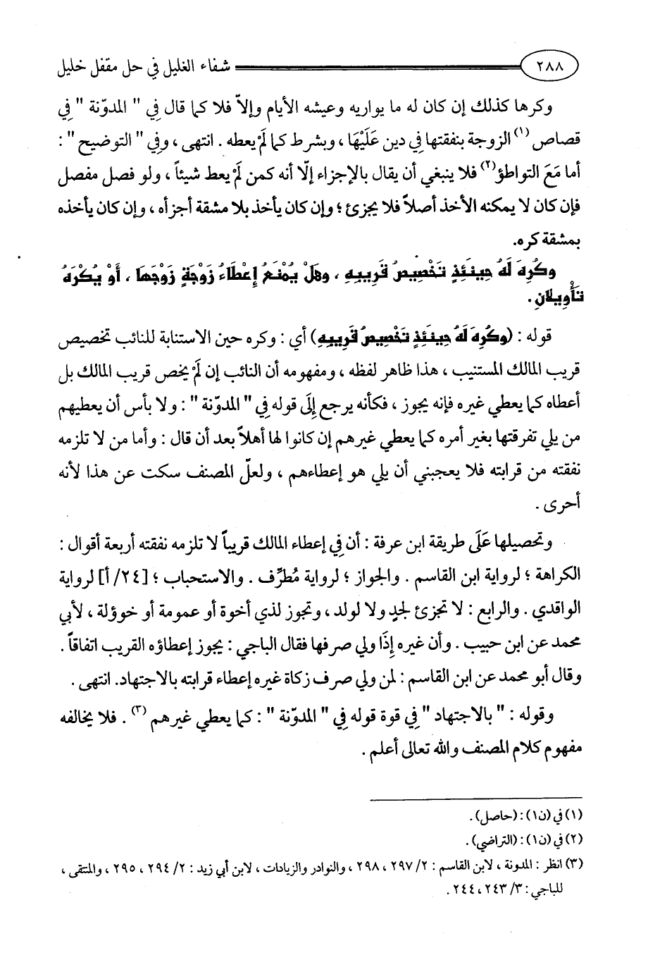 (¬3) انظر: المدونة، لابن القاسم: 2/ 297، 298، والنوادر والزيادات، لابن أبي زيد: 2/ 294، 295، والمنتقى، للباجي: 3/ 243، 244.