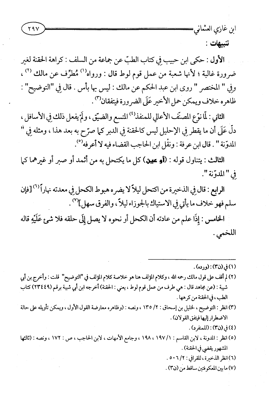 (¬3) انظر: التوضيح، لخليل بن إسحاق: 2/ 135، ونصه: (وظاهره معارضة القول الأول، ويمكن تأويله على حالة الاضطرار إليها فيتفق القولان).