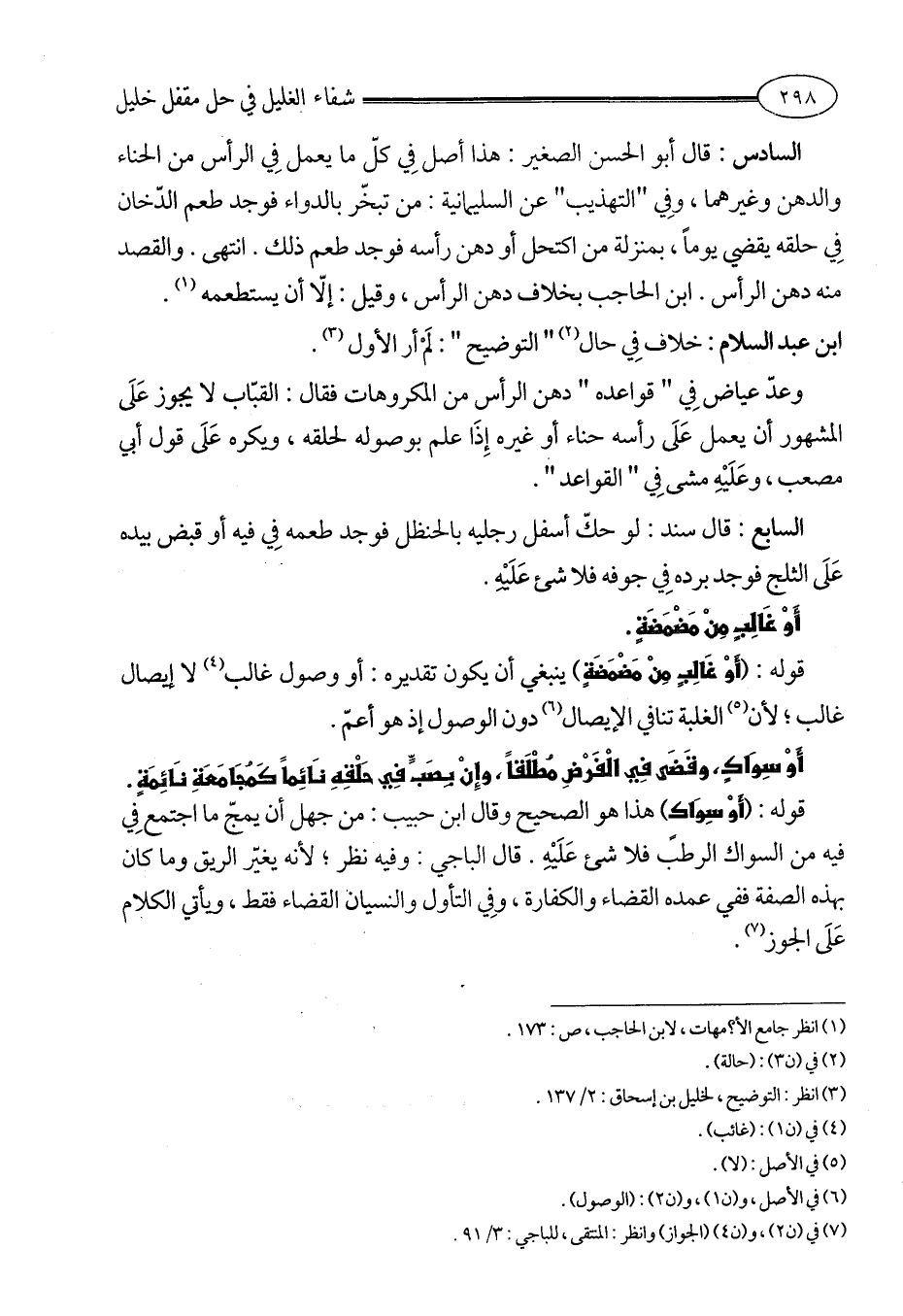 (¬3) انظر: التوضيح، لخليل بن إسحاق: 2/ 137.