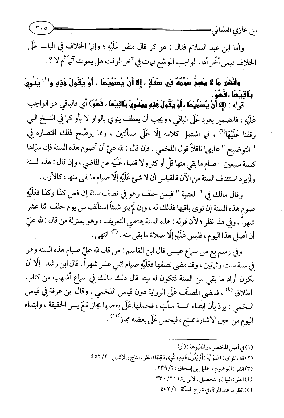 (¬5) انظر ما عند المواق في شرح المسألة: 2/ 452