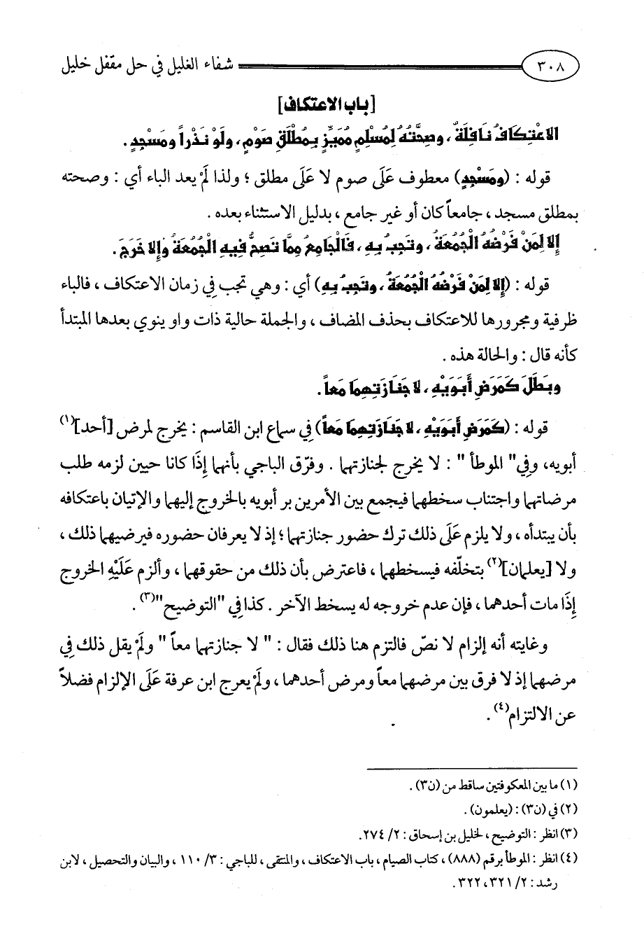 (¬4) انظر: الموطأ برقم (888)، كتاب الصيام، باب الاعتكاف، والمنتقى، للباجي: 3/ 110، والبيان والتحصيل، لابن رشد: 2/ 321، 322.