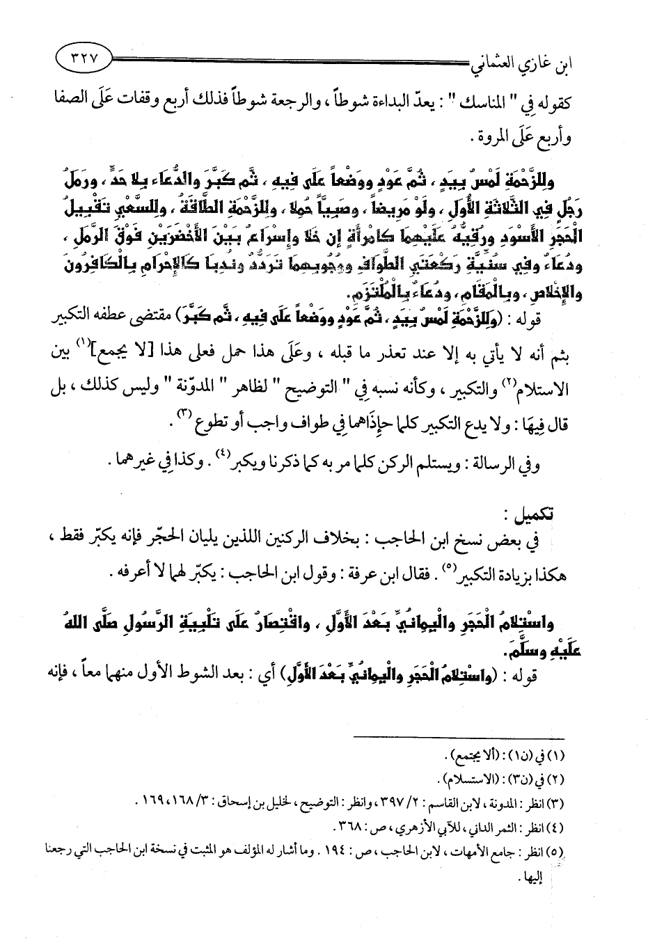 (¬5) انظر: جامع الأمهات، لابن الحاجب، ص: 194. وما أشار له المؤلف هو المثبت في نسخة ابن الحاجب التي رجعنا إليها.
