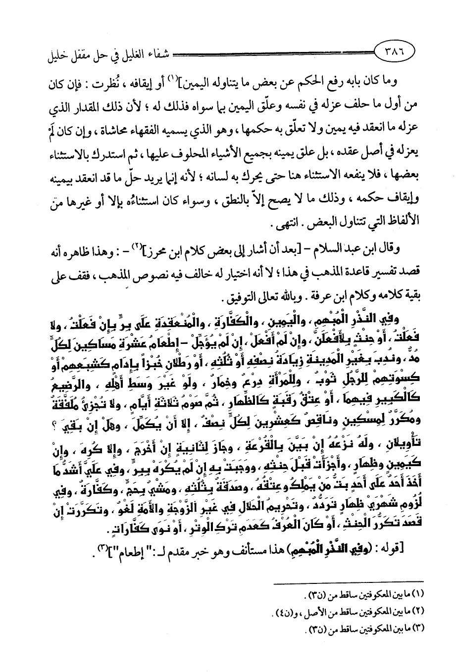 وقال ابن عبد السلام -[بعد أن أشار إلى بعض كلام ابن محرز] (¬2) -: وهذا ظاهره أنه قصد تفسير قاعدة المذهب في هذا؛ لا أنه اختيار له خالف فيه نصوص المذهب، فقف على بقية كلامه وكلام ابن عرفة. وبالله تعالى التوفيق.