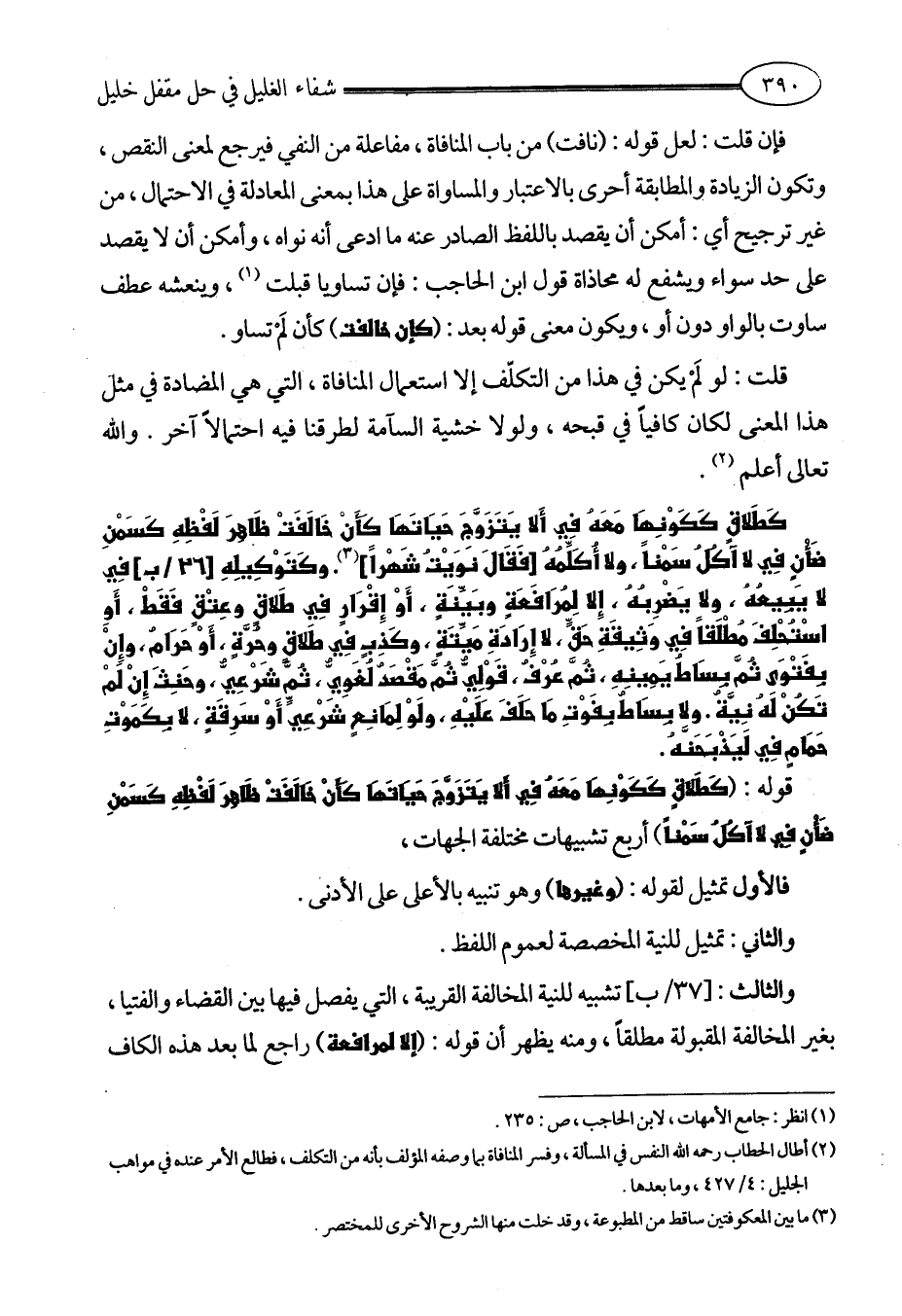 (¬2) أطال الحطاب رحمه الله النفس في المسألة، وفسر المنافاة بما وصفه المؤلف بأنه من التكلف، فطالع الأمر عنده في مواهب الجليل: 4/ 427، وما بعدها.
