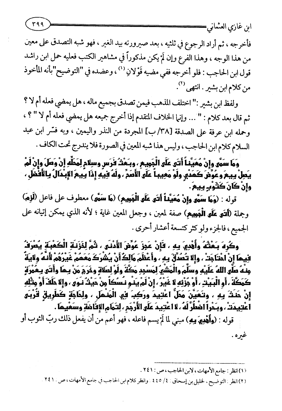 (¬2) انظر: التوضيح، لخليل بن إسحاق: 4/ 445. وانظر كلام ابن الحاجب في جامع الأمهات، ص: 241.